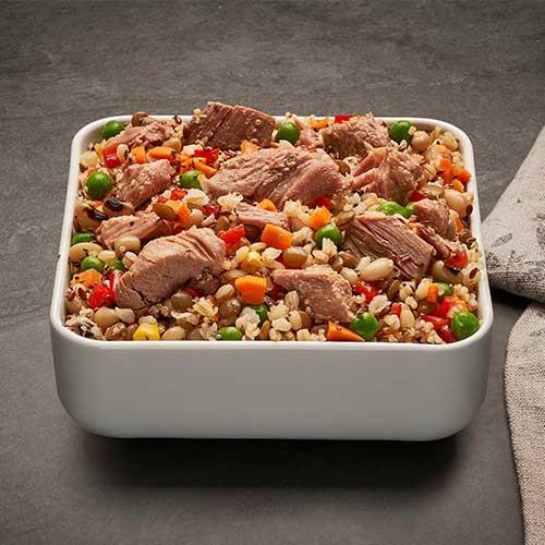 İçindekiler: Hindi but eti (%42), tahıl (%18) (bulgur, buğday) (gluten), börülce, yeşil mercimek, bezelye, mısır, havuç, tohum (%5) (kinoa tohumu, keten tohumu, chia